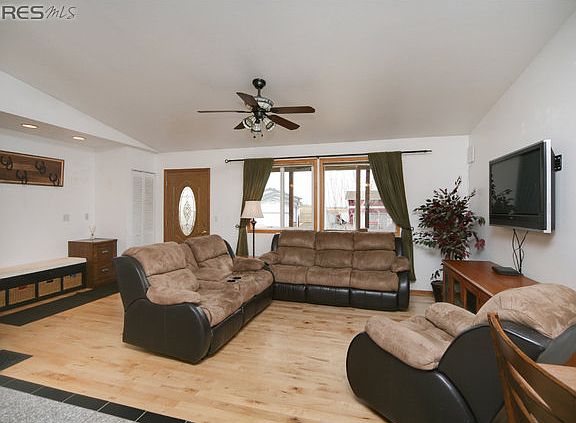 Check out this great raised ranch on a corner lot in South Berthoud! Loads of updating including; maple kitchen cabinets, wood floors, Corian counters with granite backsplash and tile kitchen floors. Open floor plan with finished daylight basement and a great room for fun and entertaining. RV/Boat parking or maybe a basketball court is ready on the huge paved concrete pad. Lg 2 tier deck and a newly sodded backyard for outdoor living. Your neighbor to the south is a Nature Area and Open Space.