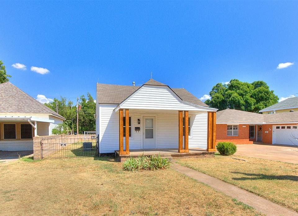 Beautifully updated property in Kingfisher, located close to downtown area, shopping, and easy highway 81 access. Upon arrival you will be greeted by sleek curb appeal with cedar posts on the front covered porch. Interior has been painted, updated flooring, baseboards, trim, new windows, etc. Kitchen has nice countertops, with plenty of storage, bathroom has tiled shower, with new vanity. Property has a basement and 2 car detached garage.