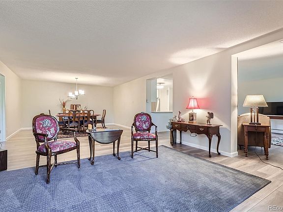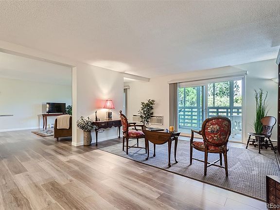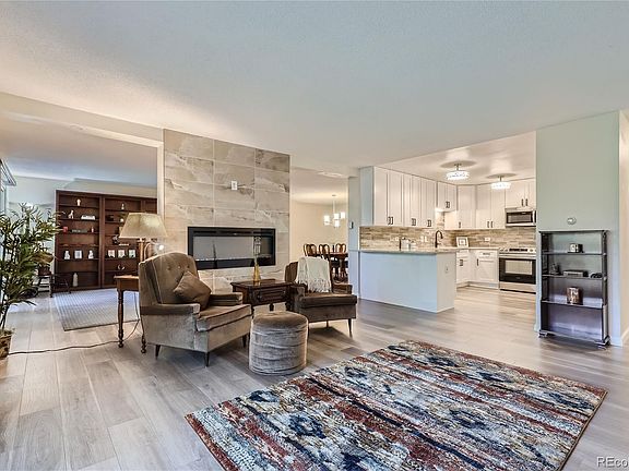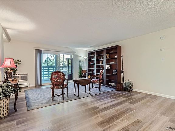 Below market rate financing available!! Showstopper that was stunningly remodeled in 2021! It overlooks walking trails, wetlands and the community gardens behind. So conveniently located next door to the laundry room and an extra storage unit for your condo! Located next to the building are your two garage spaces, one with cowboy storage unit. You will enjoy hard to find overhead lights and remote controlled window blinds in both bedrooms. The private primary bedroom suite includes a spacious bedroom, walk-in closet, lovely upscale bathroom and linen closet. The spacious secondary bedroom is at the opposite end of the condo and includes an upscale full bathroom. The dream kitchen is loaded with tall cabinets, a coffee bar, a peninsula with bar seating and stainless steel appliances. The quartz countertops and tile backsplach are stunning! The wood-look luxury vinyl flooring extends from the kitchen throughout the condo, except for the bedrooms with comfy carpet and bathrooms with lovely tile floors.. Easily move around the expansive open floor plan with roomy living room, den and dining room. Enjoy the dramatic tiled partial wall with a modern gas fireplace to brighten your winter days and includes a tv connection above. The enclosed 28' X 7" double lanai is a delightful place for coffee, a meal or to curl up in a comfy chair and read a good book. Nothing to do but enjoy! Windsor Gardens is Denver's premier 55+ community with a golf course ($10 per round for resident to play), restaurant open 7 days a week (and special meals and entertainment), indoor and outdoor pools, fitness center with equipment helper, 24 hour security. Join in the multitude of activities 7 days a week or just close up the unit and go adventuring. Taxes and heat are included in the HOA fee.