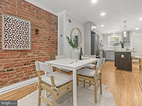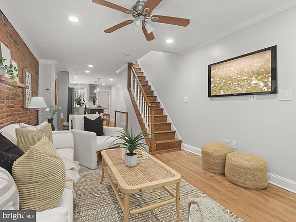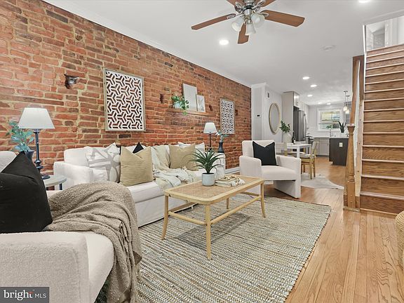 This charming interior rowhome is located in the vibrant Canton community of Baltimore within walking distance to Patterson Park, dining, shopping, and entertaining options. The brick exterior and updated fixtures create an inviting first impression as you enter the open main level. The living room features a transom window, a brick accent wall, and recessed lighting, seamlessly transitioning into the dining area and gourmet kitchen. The kitchen is equipped with granite countertops, 42" soft close cabinetry, a subway tile backsplash, a center island with a breakfast bar, crown molding, and stainless steel appliances. The upper level boasts a primary bedroom with crown molding, high ceilings, and a spacious closet. An additional bedroom provides access to a private balcony and the hall bath. The fully finished lower level offers versatile space, suitable for a third bedroom or office, and includes laundry facilities and a powder room, perfect for convenient living or accommodating guests. A one-car parking pad adds to the property's appeal, and major commuter routes like I-895, I-83, and I-95 enhance its accessibility. This home is a must-see for those seeking a blend of modern amenities and classic charm. Updates: Kitchen - 2015, Water Heater - 2013, Roof - 2018 (10 year Warranty).