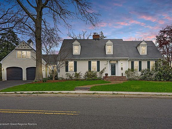 Views of Deal Lake and one mile to Allenhurst beach; spacious home on a quarter acre lakeside lot features an oversized garage with loft. Loft has a private entrance, vaulted ceiling and full bathroom. Main house has 4 bedrooms, master bedroom on the first floor, gracious dining room and living room with gas fireplace and window seat. Custom kitchen with breakfast area and paneled appliances. Two full baths, upstairs bath with a walk-in shower, soaking tub and radiant heat. Ample closet space, built-in bookcases, true divide wood windows and hardwood floors throughout are features of this custom built home. Enclosed breezeway with slate floors connects the house to the garage and backyard terrace. 900 square foot dry basement with 7 foot ceilings. Plenty of parking and room for a pool.