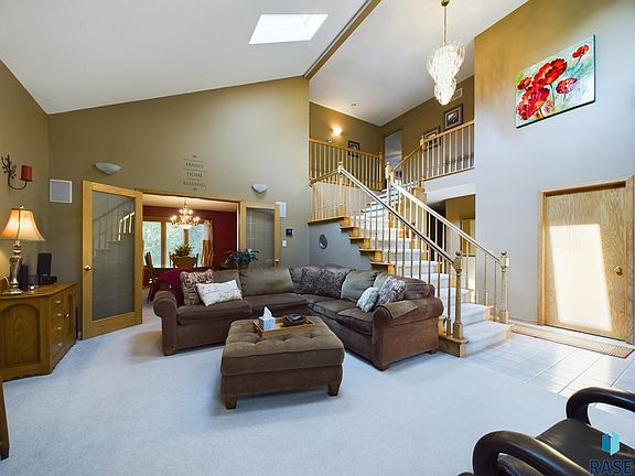 UNIQUE PROPERTY with beautiful wooded lot & access to Big Sioux Rec. Area. The 2-story, 5 bed, 3.5 bath home greets you w/soaring ceilings in a sun-filled foyer & living rm w/fireplace, built-ins, & open staircase to 2nd floor. French doors to formal dining room, lg kitchen w/granite counters, an abundance of cabinets & upgraded appliances. Vaulted breakfast room w/skylights & windows. Main floor family room with fireplace off kitchen, & door to an amazing 18,800 sq.ft. tranquil outdoor space w/expansive deck, surround sound, concrete pad off a 3-car garage. The main floor is completed w/laundry rm & 1/2-bath. The 2nd floor primary bedroom is spacious w/lg walk-in closet, double vanity, jetted tub & shower. Two more nice-size bedrooms & a full bath complete the 2nd floor. The basement has lg fam room w/surround sound, full bath, 4th bedrm, office/bedrm & storage area. Carrier Furnace 2018 w/Smart dual zones, AC 2014, water heater 2021. Exterior Paint 2021, interior 2016.