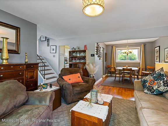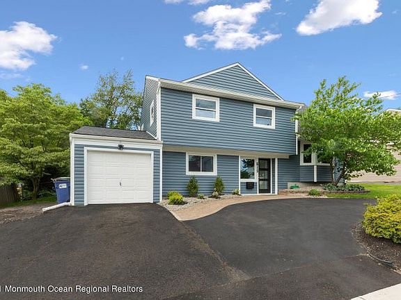 Come see this beautiful well kept split level home in Hazlet. Easy access on and off the circular driveway. Main level has resurfaced wood floors also leading up to the bedrooms. High Efficiency Lenox HVAC system installed in 2020. New front door, windows and siding installed in 2019. Large family room features sliding glass door to paver patio spacious backyard. Walk up six more steps to see the potential additional square footage awaiting your imagination. Close proximity to NYC buses.