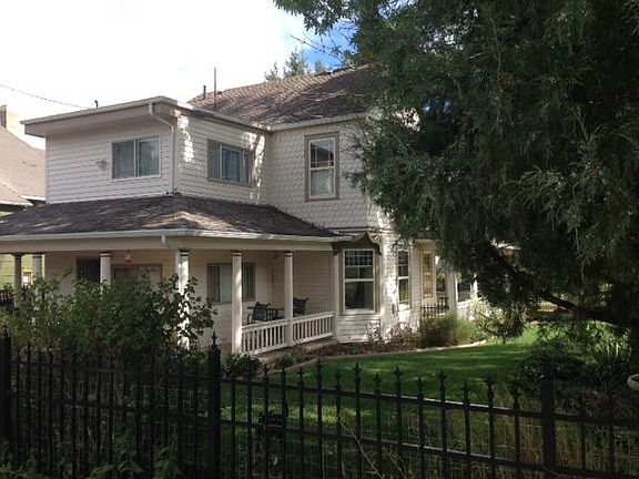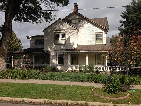 SEE NOTE ON QUALIFIED SHOWIN CLARK / BESHOUR HOUSE; historic Victorian built in 1888 by Julius H Clark, postmaster. Also Owned by Dr. Ben Beshour grandson of Dr. Michael Beshoar, Civil War veteran. A 4 bedroom, 1 and 1/2 bath home on corner, fenced lot with unattached 2 car garage and garden storage room. Wrap - around porch on almost three sides. Forced air heating and wood burning fireplace. Finished attic and usable cellar. Beautiful mature trees and landscaping. Automated sprinkler system and full outdoor stainless kitchen. Custom made shutters and well maintained hardwood floors. Window glazing pattern features a multi-pane colored glass top sash, which is movable, with a single-pane lower sash, typical for Queen Anne Style homes built from about 1880 to 1915.