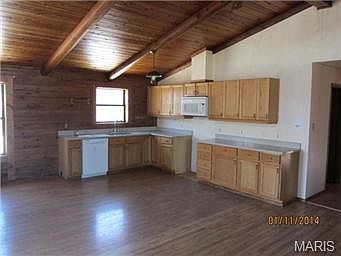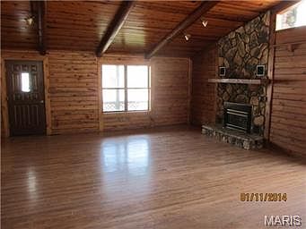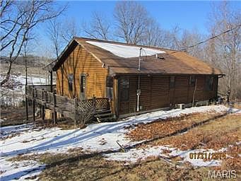 The feel of country living & close to shopping! This is a unique home on 1.03 acre lot (per tax records). 2 car det gar w/upstairs storage & wired w/220. White Cedar Log style home on a concrete foundation. Wrap around deck w/covered porch area. Inside you'll find an open floor plan-Living,din & kitchen w/vaulted ceilings & brick fireplace. Spacious 2 bedroom 2.5 bath with a full walk out basement. The basement has a rough-in for a second fireplace, a kitchen area & storage rm. with shelving. The home does needs some TLC: both exterior & interior-paint,carpeting,flooring & kit needs some updating. Home to be sold in current AS IS Condition. Seller will NOT provide or pay for any inspections/repairs. Buyer will have 7 days from final acceptance to run any/all inspections. CASH ONLY OFFERS. Seller will not review any offers for first 5 days from list date. SECRETARY OF VETERANS AFFAIRS IS THE OWNER OF RECORD.