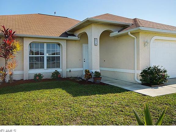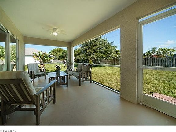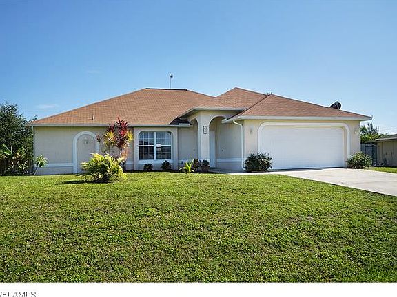 This attractive and well-maintained home is situated on a wide, triple lot. The property is ideally located within walking distance to four schools. Skyline Elementary School is located directly across the street. Patriot Elementary School, Challenger Middle School, and Cape Coral High School are all a short walk from the property. The interior is freshly painted and carpeted. The large living area features a volume ceiling. An island kitchen and laundry room add to the efficient floor plan. There is a finished lanai and finished garage. Assessments have been paid.