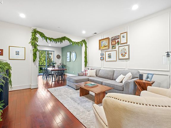 Stunning Renaissance at Peterkort Woods high end townhome! Welcoming ground level covered front porch opens to 9ft ceilings and gorgeous Brazilian cherry hardwood floors extend throughout the main lvl. Open great room has wainscoting and centerpiece electric fireplace. Formal dining has slider to private covered back deck overlooking the tree-lined common area--perfect for year around grilling! Gourmet kitchen offers slab granite counters, glass front cabs, and GE Profile SS appliances. Powder BA & closet complete the main. Primary BR up has walk-in closet and French Doors to the attached ensuite bath w/double sinks, walk-in shower, linen closet and private water closet. 2 additional BR's up share a full hall bath with shower/tub combo. Lower level bonus room is the perfect flex space with rubber flooring and a closet (office, work out space, etc). Door to 2 car side by side garage. Walk out to the common area with covered BBQ and lush common space. Community amenities include but are not limited to an incredible pool, BBQ's, outdoor fireplace, and a clubhouse! The neighborhood is surrounded by beautiful walking trails and old growth trees. Only minutes to MAX, downtown, Intel, Nike, and more!