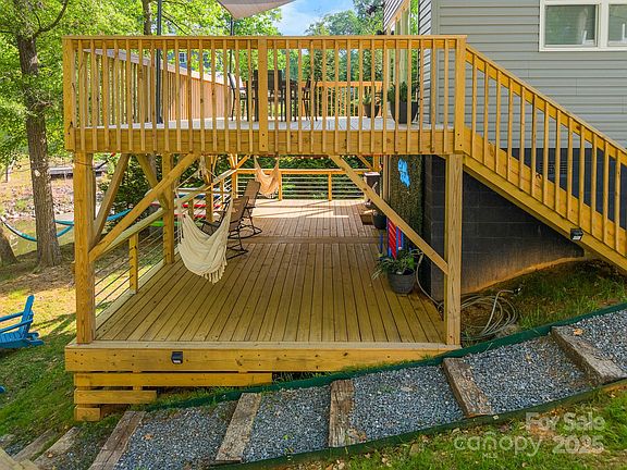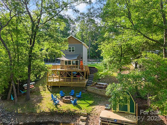 This beautiful lakefront home is set up as an Airbnb and is ready for its next owner. The backyard is complete with a large two story deck, firepit, dock, shed, and kayak launch! The tall crawlspace also doubles as a spacious storage area. Inside this newly constructed home you'll find two well decorated bedrooms, kitchen with butcherblock counters, fully furnished living room, and more! The home came online June 2024 and grossed $17,000. With full time management this home could gross over $40,000 annually!