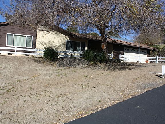 Hillside & View Ranch style home on a 1 acre lot with orchard trees. 4 Bedroom, 2.5 Bath, Large living room with fireplace & wet bar. Kitchen includes all appliances, large pantry, washer and dryer in laundry room, ceiling fans, central heat and air conditioning. New wood laminate flooring in 3 bedrooms. Breeze way separates the house and garage with 1/2 bath off the garage area. 2 car garage with remote opener, ample off street parking at top of driveway. Private and quiet. Call management company to schedule an appointment to view. Tenant pays all utilities including water, trash, and cable charges. Solar energy panels scheduled for installation in February. Septic system.