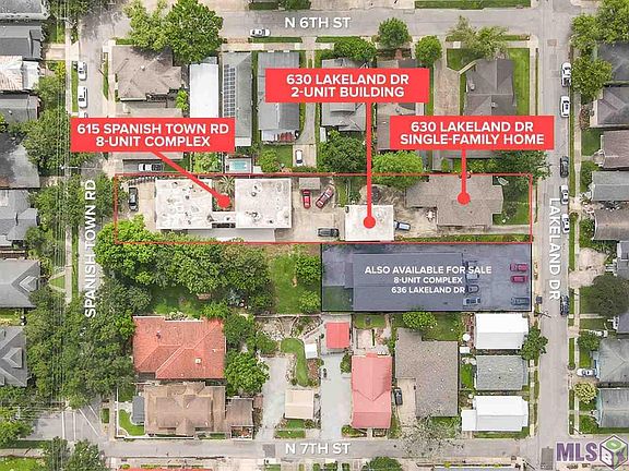 ***NO SHOWINGS WITHOUT AN ACCEPTED PURCHASE AGREEMENT*** PLEASE REVIEW OFFERING MEMORANDUM ON OUR WEBSITE BEFORE REACHING OUT WITH QUESTIONS. This multifamily portfolio in the Historic Spanish Town Neighborhood consists of 11 units distributed between 4 buildings: two 4-unit apartment buildings joined by a catwalk (615 Spanish Town Rd), a single-family home (630 Lakeland Dr), and a duplex (located on the southern portion of the lot at 630 Lakeland Dr). The property is spread between two adjacent lots that stretch an entire block from Spanish Town Rd to Lakeland Dr, between N 6th St and N 7th St. Both the apartment buildings and duplex are two stories and are accessed from Spanish Town Road, with off-street parking for each. The single-family home faces Lakeland Dr and consist of 3 bedrooms & 2 bathrooms, totaling ±1,700 SF. 615 Spanish Town + Duplex: All 10 apartment units have central A/C, and 8 of the 10 apartments have in-unit washer/dryer. Some renovations have been completed on 8/10 of the apartment units, including a complete renovation to Unit 1. The roof is an estimated 12 years old. Landlord pays water, sewer, gas, and common area electric. Tenants pay their own electric, and a portion of utilities for 9&10 is split with 630 Lakeland Dr. 630 Lakeland Dr: Roof is an estimated 9 years, and the home has central A/C. Tenant is going into their 3rd year. Landlord pays water & sewer. Tenant pays electric & gas. This property is also being offered as part of a 37-unit portfolio. Contact broker for more info. https://buildout.com/connect/sharing/downtown-apartment-multifamily-portfolio-615-spanish-town-baton-rouge