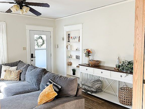 Welcome to this charming 1918 Sheridan home, perfectly blending modern updates with classic character. Featuring new vinyl floors and fresh paint throughout, this inviting 2-bedroom, 1-bath residence boasts an updated bathroom with a luxurious clawfoot tub and a multi-head shower. Enjoy morning coffee on the covered porch, or host gatherings in the expansive backyard. The long driveway leads to a detached building with French doors and a window. Additional highlights include a cozy fireplace, forced air heating, a tankless hot water heater, and a convenient stackable washer and dryer. With ample storage in the unfinished basement and just minutes from downtown, this home offers both comfort and convenience. Don’t miss this opportunity to make it yours!