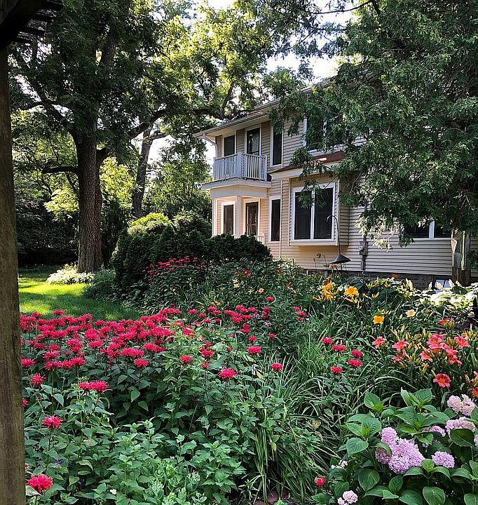 1910 classic two-story with screened front porch; double city lot with mature trees and flower gardens; oak flooring and oak trim throughout; quiet street overlooking City Park; near Hancher, UI Arts campus, UIHC.