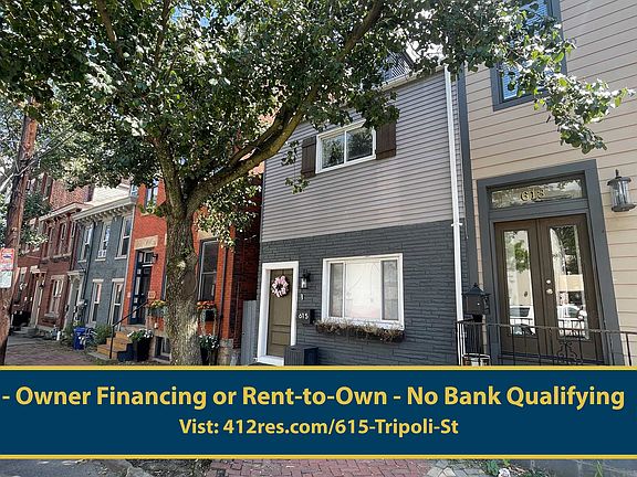 Own this home today! No bank qualifying. Available for rent-to-own or owner financing. To learn more and fill out a pre-application please visit 412res(.)com/615-tripoli-st Located in the heart of historic Deutschtown this beautifully updated 4-bedroom, 2-bath home offers 2,816 square feet of living space filled with historic charm and modern conveniences. Built in 1900, the property blends timeless craftsmanship original hardwood floors, detailed molding, and exposed brick accents with thoughtful updates, creating the perfect balance of old-world character and contemporary comfort. Inside, the spacious main floor provides a warm, inviting atmosphere, ideal for gatherings and everyday living. The modern kitchen features updated appliances, newer mechanical systems, and a reverse-osmosis water filtration system. The second floor offers a private family room retreat and bedrooms, while the expansive third-floor owner's suite boasts a gas fireplace, skylights, a walk-in closet, and its own sitting area. The full, unfinished basement provides abundant storage space, while outside, a private Trex deck offers a perfect spot to relax or entertain. Located in the heart of historic Deutschtown, this home is steps from local restaurants, breweries, and cafes, and just a short walk to PNC Park, Acrisure Stadium, the National Aviary, Allegheny Commons Park, and the vibrant North Shore. Enjoy easy access to downtown Pittsburgh and all the city's cultural, sporting, and entertainment venues. If you've been searching for a home that offers generous space, a walkable urban lifestyle, and a rare mix of historic charm with modern updates, 615 Tripoli Street is ready to welcome you. Own this home today! No bank qualifying. Available for rent-to-own or owner financing. To learn more and fill out a pre-application please visit 412res(.)com/615-tripoli-st Own this home today! No bank qualifying. Available for rent-to-own or owner financing. To learn more and fill out a pre-application please visit 412res(.)com/615-tripoli-st