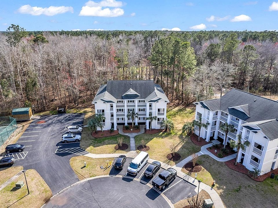 A private wooded setting and buffered golf course views of Aberdeen Golf Course are an outstanding backdrop for this top floor villa. This 1 BR 1 BA unit unit offers an open concept living area with volume ceiling as well as a generous sized bedroom with spacious closet. Property has been well maintained and is tastefully decorated. Not to be missed is the inviting rear screened porch and there is also a separate exterior storage closet. Unit is being offered for sale with partial furnishings and features newer waterproof vinyl plank flooring in all wet areas, newer carpeting and recent washer and dryer. The HOA fees are reasonable and the community offers 3 pools (one of which is steps away from this building) and tennis. Convenient to beaches, golf, schools and shopping as well as the attractions of North Myrtle Beach and Hwy 31.