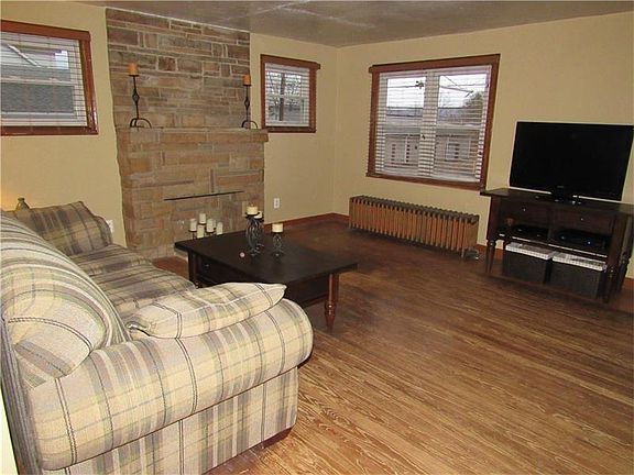 Welcome home to this adorable two bedroom home in Unity Township. Beautifully updated kitchen with Quartz countertops, new lighting and fixtures. The new backsplash & floor tiles are both in a neutral palette. Newer windows through out the house provide lots of natural light. The living room has a decorative stone fireplace & HW floors. The bathroom has been updated with new fixtures, vanity, toilet and tiled tub surround. The upper level can be turned into a third bedroom, playroom, office or anything you can dream up with its abundance of living space. Real hardwood floors through out the home. Huge freshly Drylok painted open basement with so many possibilities. 6+ spaces for parking off street with the newly paved driveway. A shed provides additional storage outside. Siding replaced in '12, front door in '08, windows '04 & '06, roof 2000, electrical '15/'16, hot water tank '15. Freshly painted rooms.