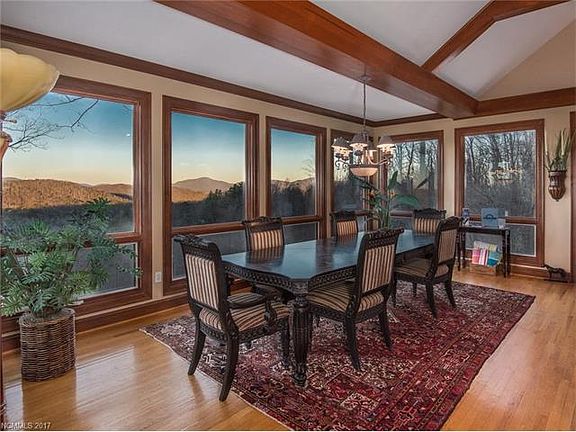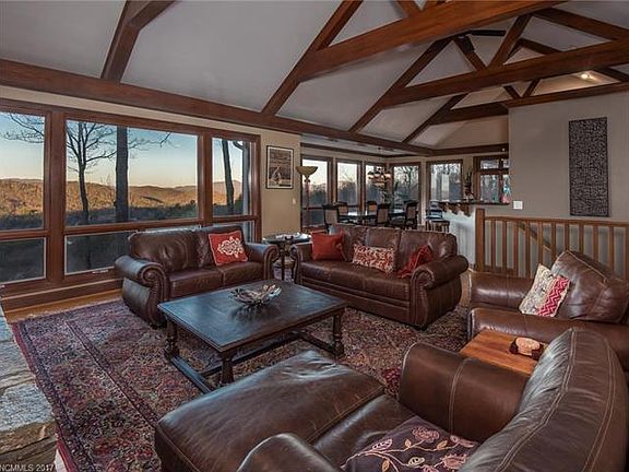 Amazing views in this beautiful South Asheville home! Open & light filled main level with high ceilings & beams, floor to ceiling stone fireplace, large open kitchen, and private master suite. Finished lower level is perfect for an extended stay or great for entertaining family & friends. Sit out on the large, covered deck to take in those views & enjoy the hot tub! Two other decks add even more enjoyment. Home is conveniently located just off Mills Gap Rd in Hidden Valley Estates.