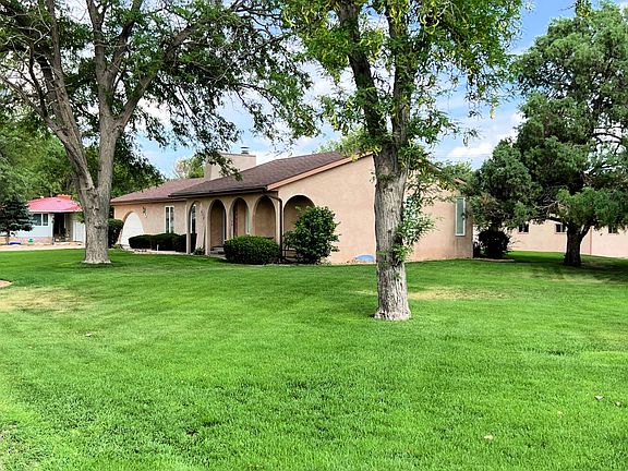LOCATED ON A 21,000 CORNER LOT NEAR THE EDGE OF TOWN, THIS LARGE HOME IS NOT TO BE MISSED! From the charming parquet flooring to the unique Spanish-influence architecture this home is beautiful! Guests are greeted by a formal entryway that runs the width of the house and opens to the back yard. The Spanish-style arches are featured both inside and out, and make a nice divider between the large, sunken living room with gas fireplace, and the bright dining room. The kitchen features a breakfast bar and lots of cabinetry. There is another door to the back yard patio off the kitchen. The master bedroom has a walk in closet and there is another small bedroom that has a door adjacent to the full bathroom. There is a second main floor bathroom with a shower, and the clothes washer and dryer are located inside a closet in this bathroom. The third bedroom on the main floor would make a nice office, or more private guest bedroom. The basement is fully finished and has a living room, and a rec room. The barrel furniture and pool table are included. There is a bar with two stools, card table with four chairs, and a nice couch. There is one more bedroom in the basement and a den, which currently is set up as a bedroom as well. The basement also features a bathroom with shower, and a large storage room with a second refrigerator (included!). Outside the yard is park-like. The large corner lot has mature trees and a sprinkler system. The home has an oversized attached one-car garage and another, detached oversize two-car garage that has an overhead door facing the ally. Unique and practical, this charming home has a lot to offer! Contact the listing company to schedule your private showing!