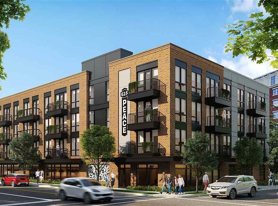 615 Peace is a collection of modern, luxury condos coming soon to Glenwood South in Downtown Raleigh. These contemporary homes contrast the historical, familiar feel of bold brick architecture with the sleek stylings of a new construction space. With one and two-bedroom plans, a balcony, access to three rooftop terraces, and private parking come standard, select units include mezzanine spaces with double-height ceilings + private rooftop spaces. Experience unparalleled Downtown lifestyle - see you at 615!