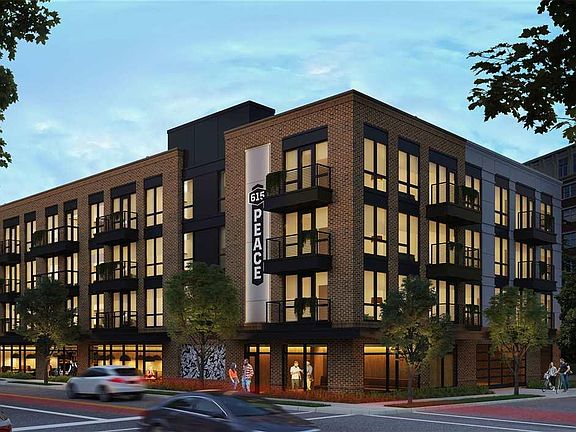 615 Peace is a collection of modern, luxury condos coming soon to Glenwood South in Downtown Raleigh. These contemporary homes contrast the historical, familiar feel of bold brick architecture with the sleek stylings of a new construction space. With one and two-bedroom plans, a balcony, access to three rooftop terraces, and private parking come standard, select units include mezzanine spaces with double-height ceilings + private rooftop spaces. Experience unparalleled Downtown lifestyle - see you at 615!