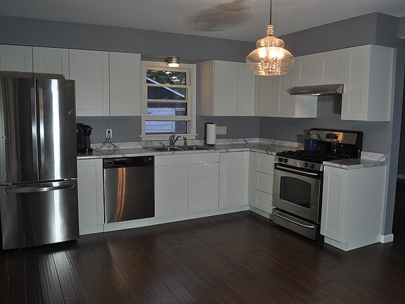COMPLETELY RENOVATED 3 bedroom, 1 3/4 bath ranch with BASEMENT. All new hand scraped BAMBOO FLOORING in the living room and kitchen. NEW CARPET in bedrooms and hallway. Kitchen features NEW CABINETS & LIGHT FIXTURES. Stainless steel appliances stay. The freshly revamped bathroom features beautiful subway tile. There is a family room located off the back of the home that gives space to spread out, offering separate areas for entertaining and relaxation. There is one car detached garage and a fully fenced huge backyard with patio.