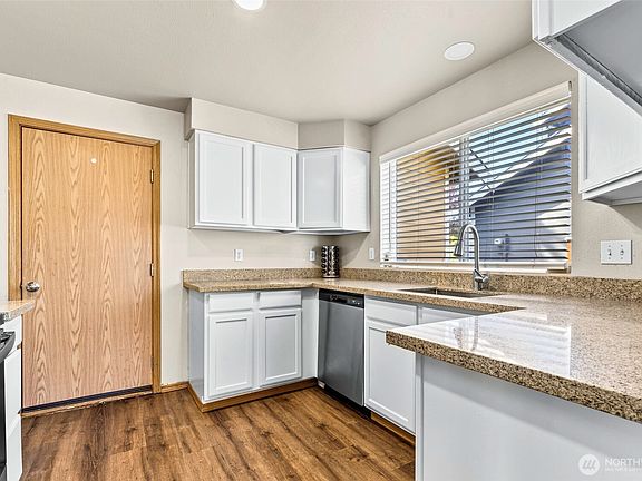 Wonderful first home opportunity in Kent! This 3-bedroom, 2-bath residence features laminate hardwood floors, a formal dining room, a cozy gas fireplace, vaulted ceilings, and central heating and air conditioning. The spacious primary suite includes a private bath and multiple closets. The kitchen offers ample space with quartz countertops. Outside, enjoy a rear patio and a backyard with park views, plus a two-car garage. Tucked away on a peaceful dead-end street just a block from the Interurban Trail, this home is also conveniently close to Highway 167, shopping centers, and Kent Station. An incredible chance to own a property with limitless potential—don't miss it!