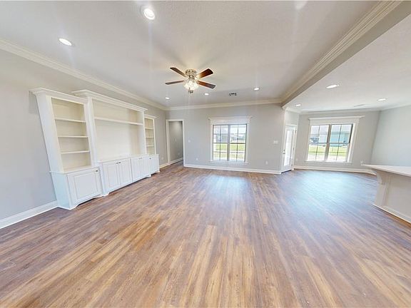 Breathtaking describes this 4 bedroom, 3 bath home with separate dining/breakfast areas which could be used as a study. 10 foot ceilings with stacked molding, custom cabinets, and extras galore! Features a gourmet kitchen, updated appliances, and a giant island that is the heart of the home overlooking the living, dining, and huge picture windows leading out to the giant covered patio. The spacious master suite leads into a spa-like bath with separate sink area, soaking tub, and oversized custom tiled shower. The master closet will make everyone happy with the attention to hanging details and built-ins. This home also has dual water heaters and an oversized garage featuring a large storage area! Upgraded Trane HVAC system. Flood Zone X, where flood insurance is typically not required.