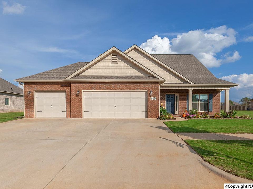 Fabulous open floor plan with NEW hardwood flooring and fresh paint in main living areas. This full brick home is truly move-in ready! All bedrooms are on the main level, with an isolated master suite. You'll love the HUGE bonus space upstairs! Plenty of upgrades in this home! The THREE CAR garage is very rare in this price range. This location can't be beat - just minutes from Redstone Arsenal Gate 7 and easy access to HSV airport. Hurry before this one gets away!