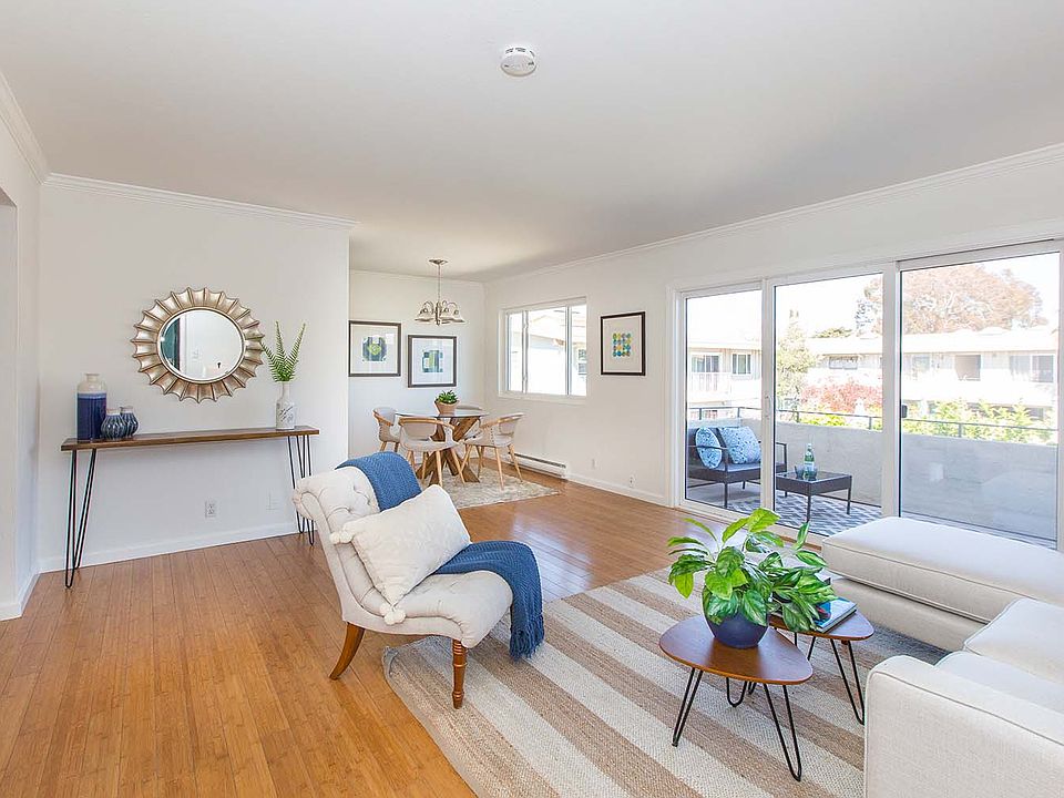 Live the Simple Life Close to the Beach. This efficient 2 bedroom, 1 bathroom condo is situated in the South Shore area of Alameda, just four blocks from Crown Memorial State Beach, in the South Shore Lagoon community. The 832 sq. ft. home (per public records) features bamboo floors, a casual dining area, and a balcony. The interior of the home has been recently painted and the bathroom boasts a new vanity. The kitchen has been recently updated with new stainless steel appliances and a quartz countertop. Carport parking for 1 car is included. Current HOA dues are $375 per month. This quaint community includes a swimming pool and on-site laundry. Shopping and dining are a mere one block away at South Shore Center. Enjoy dining at Trabocco and grocery shopping at Trader Joe?s or morning coffee at Starbucks. Community Features: ? Shared laundry room ? 1 block to the conveniences of South Shore Center ? 4 blocks to Crown Memorial State Beach ? Minutes to Harbor Bay Ferry Terminal 31