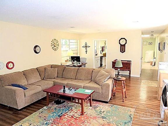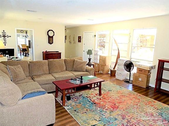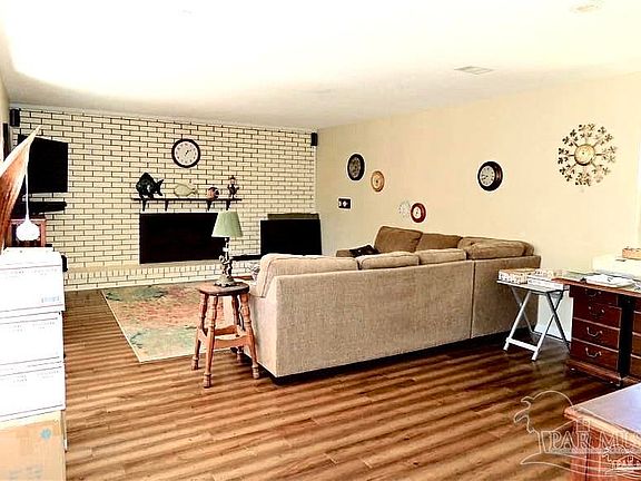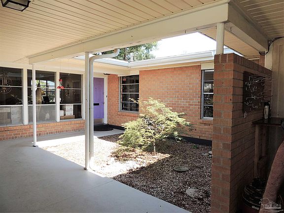 Located in the heart of Uptown Pensacola within the coveted Scenic Heights area, this mid-century modern brick home is move-in ready & ready for you! Looking for charm & character? You found it - no cookie-cutter here! As you arrive, you will notice the custom gated entries for the walkway & carport into the most excellent courtyard. Peaceful, private, & shaded, this area is perfect for morning coffee, entertaining guests, or secure playing for kids & pets. Upon entry into the huge living room, you'll fall in love with the custom tile entryway, tall triple windows for a relaxing view of the courtyard, & gas fireplace (redone in 2019) for those fast-approaching winter nights. Gorgeous walnut engineered hardwood floors flow throughout the living room, hallways, & bedrooms. The extra-large dining room has plenty of space for special occasion meals & features stylish lighting, French doors to the sunroom, & skylights for wonderful natural lighting. The convenient kitchen includes updated lighting & hardware, breakfast bar, Magic Chef oven (2021), dishwasher (2022), & refrigerator (2021). The sunroom can be used as an office, game room, playroom, etc. What would you use it for? All bedrooms are generous in size & include ceiling fans. The master bedroom includes 2 large closets for plenty of storage. The master bathroom features vintage tile shower, updated vanity & toilet, & window for natural light. The back bedroom offers a separate entrance. The retro-groovy hall bathroom is in such great condition that it's back in style! Features include updated toilet & vanity, transom window for natural light, & cabinets for storage just outside the door. The spacious laundry room offers extra storage, fan, & alternate access to the courtyard & backyard. The backyard is the perfect size for easy maintenance & includes an open patio for grilling, storage shed, and privacy fence (back fence is new). Added bonus: the roof was replaced in 2018! Make your appointment today!