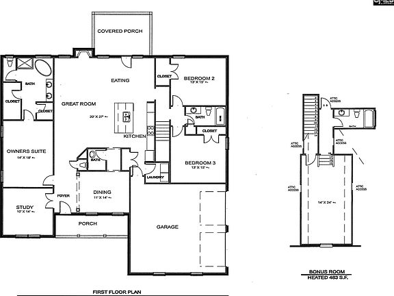 New Construction - All Brick home with side entrance garage and open floorplan great for entertaining. Spectacular open floor plan with 3 bedrooms on the main level. Walking in from the front porch you will find a large home office (13 x 13), open dining room with extensive molding, a large oversized great room/kitchen eat-in area. Great room features a fireplace, hardwood floors and extensive molding. Kitchen features a large island for entertaining, granite countertops, tile backsplash, an oven/microwave combination wall unit, gas cooktop. Owners suite features a large 18 x 13 bedroom, his and hers closets, double vanity, tile shower, soaking tub. Hardwoods throughout the first floor. Upstairs has a large bonus room (14 x 24) which could be used as a extra bedroom, office, library or education suite with its own bathroom and closet. You will love the large, almost 1/2 acre homesite while sitting on your covered porch. Home will be ready late spring and you can still pick all colors and selections with our designer.