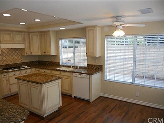 Situated at the end of a quiet cul-de-sac in the sought-after gated community of Rocking Horse Ridge, this stunning traditional style home is an absolute showplace with model caliber upgrades, a welcoming two level floor plan and intimate low-maintenance backyard with covered patio that is the perfect extension of the impressive indoor living environment. Voluminous ceilings and an abundance of windows make it bright and open, while hardwood floors, crown moldings, French doors and beautiful gourmet island kitchen with granite counter-tops and antique finish cabinetry make it exceptional in every way. There are 4BR and 3BA in the home including an oversize master suite featuring a walk-in closet and private bathroom with granite counter-tops, spa tub and Travertine shower. Other highlights include a formal living room with fireplace, separate formal dining room, breakfast nook and separate family room with wet bar. Custom paint finishes throughout, newly installed forced air heating and central air conditioner, indoor laundry room and attached three car garage. Association privileges include 24 hour gate-guard, pool, spa, clubhouse and tennis courts. Within close proximity to hiking, biking & walking trails, this special home is an absolute delight.