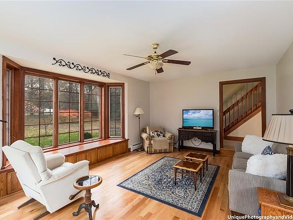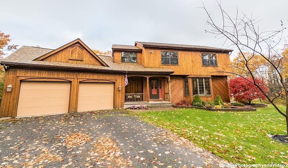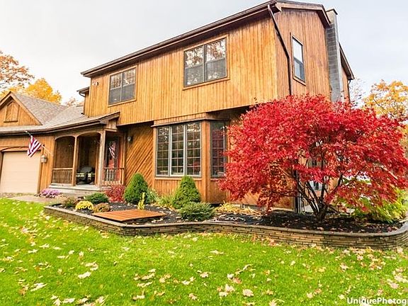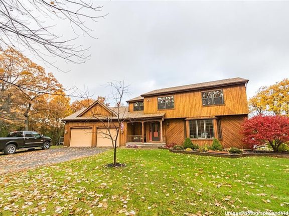 Come Home Every Day To A Retreat Like Colonial Situated On Over 14 Acres In The Town Of Canandaigua! Nestled Within The Trees Away From The Road, This 3 Bed, 2.5 Bath Home Boasts Fantastic Curb Appeal W/ Cozy Front Porch. UPDATED & Renovated KITCHEN Is Highlighted By GRANITE Counters, LARGE Island/Breakfast Bar, Newer Cabinets, Stainless Steel Appliances, Modern Tile Backsplash & HARDWOOD FLOORS. Hardwoods Continue Into Dining Space, Sun Drenched Living Room W/ Large Bay Window & Upstairs Throughout 3 Spacious Beds Including Master Ensuite W/ Spa Like Soaker Tub & Walk In Closet. Possible 4th Bed/Office Space W/ Unique Loft, Ladder & Barn Door. Laundry Room W/ TONS Of Storage & Sink. FINISHED BASEMENT W/ Open Staircase & Bar!