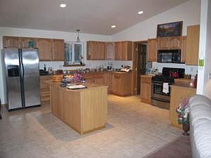 Beautiful Cedar sided home with view and in-floor heat. Great floor plan,large tiled kitchen, up graded appliances, fireplace, vaulted ceilings, large laundry room/hobby room, master w/jetted tub & walkin closets satelite tv and an oversized garage.