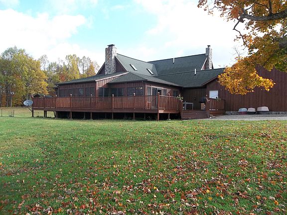 The expansive 12x15 foyer sets the stage upon entering this grand log home, leading to a large central living area with 23' tongue and groove pine ceilings and a stone fireplace. The gourmet kitchen offers a Viking stove with six burners, griddle and double ovens, a center island and breakfast area. There is a separate formal dining room with a stacked stone fireplace The master bedroom is located on the 1st level with fireplace, Jacuzzi tub and custom cabinetry in the closet. A breathtaking sun room spans the length, of the back of the home offering more gathering space off the kitchen and living areas. There is hickory and cherry flooring throughout the 1st and 2nd levels.This 76 acre property exhibits pasture land, woods, 2 springs, plenty of wildlife and a 6 stall top of the line barn.