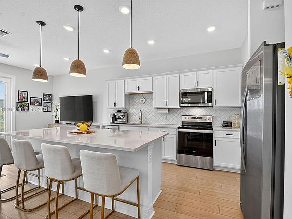 Nestled in the heart of the Ranchette Road Townhomes community, this nearly-new lakefront townhome delivers a seamless blend of elegance, comfort, and modern convenience. Built in 2023, this beautiful end-unit residence offers 3 bedrooms, 2.5 bathrooms, and 1,675 square feet of air-conditioned living space within a total of 2,091 square feet, including a spacious 2-car garage.The home's stunning curb appeal begins with a beautifully landscaped front yard, stone paver driveway, and a welcoming covered entryway. Inside, you'll find an open-concept main level with ceramic tile flooring, leading into a bright and airy living area filled with natural light.