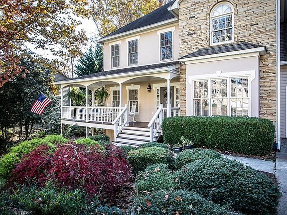 Freshly painted interior highlights crown molding and hardwoods throughout the main level. White cabinetry, stainless steel appliances and additional lighting offer a bright, airy kitchen. Granite extends over the large island for seating to complement the open entertaining flow. Head upstairs to a multitude of bedrooms and baths, with double vanities and tile baths, or down to newly carpeted bedroom and bonus space. Gather in the screened in porch or sprawl onto the extended deck overlooking the backyard with swing set, treehouse and stone fire pit.