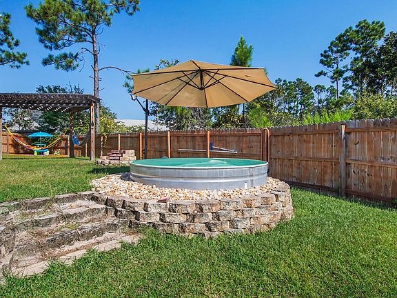 'CURRENTLY UNDER CONTRACT, SELLER WILL CONSIDER BACKUP OFFERS The popular Cali floor plan has three bedrooms just off the foyer with a shared bath. The kitchen is open and spacious with plenty of cabinetry, a corner pantry, a center island with sink and dishwasher. The standard appliances include a stove, microwave, refrigerator and dishwasher. Master Bedroom is just off the large living area and has a dual sink vanity, a large soaking tub, separate shower and a walk-in closet. Additional features include vinyl flooring throughout the home. The property is nestled in a quiet cul-de-sac. The backyard will be your very own oasis! Fully fenced back yard with a wooden privacy fence. Enjoy a nap in your hammock under the pergola after you float around in the stock pond pool. Don't hesitate because this one won't last. All measurements to be verified if important
