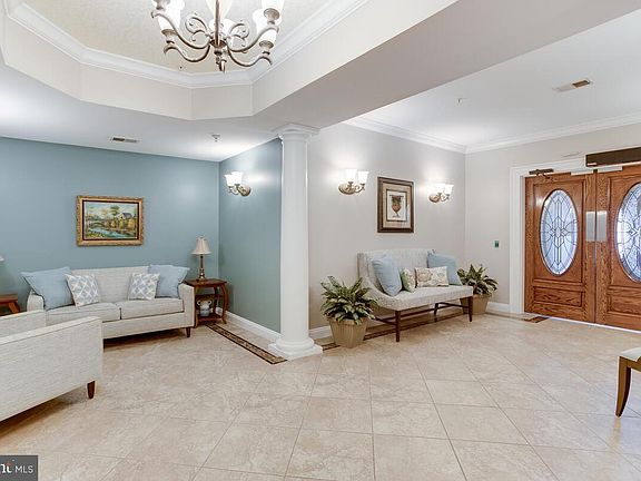 Rarely available ground floor two bedroom two bath unit in 55+ ACTIVE ADULT community Gatherings at Lyndwood. This lovely 1,500 sq/ft unit features crown moldings and hardwood floors throughout. The spacious living room opens to a private patio for peaceful outdoor living. The primary bedroom comes complete with a full bath en suite, walk-in closet and sitting/dressing area. The second bedroom also has its own walk-in closet. Another full bath can be accessed from the hallway, as well as the washer and dryer. This unit also has a den which can double as office space or a formal dining room. An oversized one car garage, with extra storage space, is also included. The active adult community of Gatherings at Lyndwood features a clubhouse, fitness center, swimming pool, and a tennis/pickle-ball court. This community is located close to shopping, restaurants, BWI international airport, the Timbers at Troy golf course, medical facilities, and all major highways. Dont miss out on this gem.