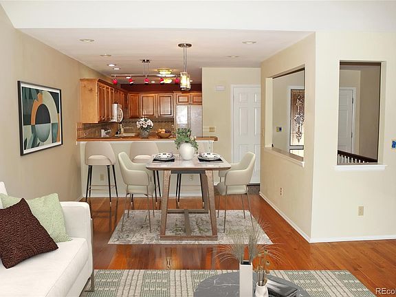 This beautiful ranch townhome in the sought after Pinehurst Country Club area has a wonderful location backing to the greenbelt and golf course! Come home and relax in the comfortable living room with Oak hardwood floors, vaulted ceilings, a wood burning fireplace and built-in bookshelves. Enjoy cooking in the gorgeous kitchen with Maple cabinets, granite counters, travertine backsplash and recessed lighting. Escape to the lovely primary bedroom with a private full bath while your guests use the freshly painted 2nd bedroom and 2nd full bath. Step out of the living room or the primary bedroom to relax on the large patio and enjoy the beautiful greenbelt views. Entertain in the finished basement with new luxury vinyl plank floors, a family room, craft room, non-conforming bedroom, and ¾ bath. New roof, gutters and soffits provided by the HOA in 2024. Enjoy the low maintenance living of this wonderful home with easy access to downtown Denver and close to Colorado Academy, Denver Christian School and Mullen High School.