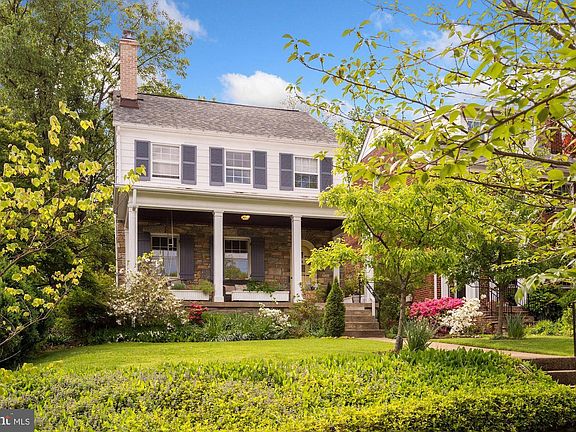 Set up and back off a quiet street in Chevy Chase, DC, this home is oozing with charm from the welcoming front porch to the rounded yellow front door! Step inside to find the living room with fieldstone wood-burning fireplace, renovated kitchen with granite counters, SS appliances, glass door to the rear patio and an ample sized dining room. Upstairs are 3 bedrooms and 2 full baths including a beautifully renovated primary bath en suite with Carrera marble. Fixed stairs from the hall lead to the finished attic (office/playroom/4th bedroom) with abundant storage including a cedar closet. The lower level contains the recreation room, laundry, more storage and the 3rd full bath. The rear yard is private, fenced, has a patio plus an upper level stone fire pit area as well as a garage accessible from the alley. Lafayette/Deal/Wilson School Cluster. Metro bus stop at the corner and just a few blocks to Rock Creek Park.