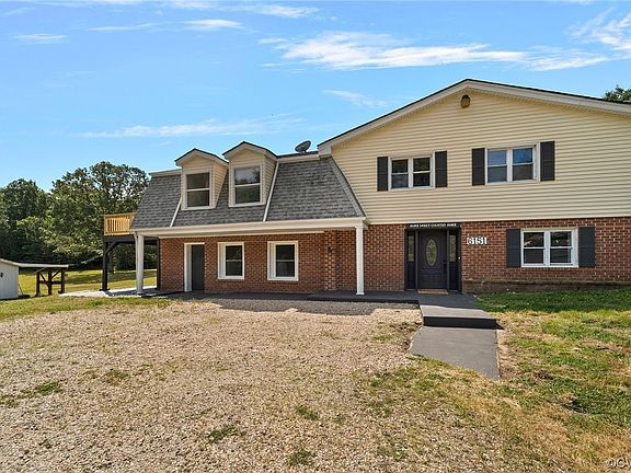 Situated on 5 rolling acres, this unique property has the perfect space to call home! Entering through the front, guests are greeted by a large living room with an abundance of natural light and gleaming new luxury laminate floors throughout. Continue up a few stairs to the completely renovated kitchen (new Chic cabinets, new marble countertops, and ss appliances) and transition into the formal eat-in dining room. A brand new laundry room and powder room complete this living space. Enter the primary wing with its own bedroom, office/second bedroom living closet and Private ensuite. The top level of the home boasts a HUGE family room, 2 additional bedrooms, shared full bath, and access to expensive new deck looking into acreage! Back on ground level is the perfect in- law suite accessible through ground level or a private staircase. With an oversized detached garage, small pond, and wide open spaces the outside also has a place for everyone. Convenient to interstates yet private off a gravel road- this is a perfect piece of paradise to call HOME.