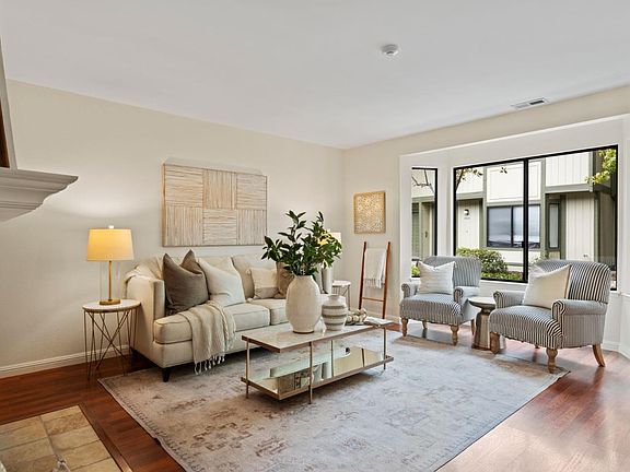 This inviting townhouse nestled in a vibrant Newark community offers a harmonious blend of modern updates and ease of living. The open and airy living room welcomes you with a large bay window drawing in natural light, and a gas fireplace flanked by built-in shelving, creating a cozy ambiance. The dining area provides a perfect space for both hosting guests and enjoying casual meals, while sliding doors lead to the adjacent patio, inviting you to savor the outdoors and create your own al fresco dining haven. The updated kitchen features stainless steel appliances including a gas range, deep single-basin sink, breakfast bar, quartz countertops, and white shaker-style cabinets. Upstairs, the primary suite offers a generous retreat with a leafy view of the community greenbelt, an ensuite bath, and an extra-deep closet. Two additional bedrooms share an updated hallway bathroom with a glass-enclosed shower. Nestled in Newpark Village, residents enjoy access to fun amenities such as a pool and tennis courts, among others! With Costco, Newark Mall, Tesla, restaurants, and transportation options, including BART and Highway 880 & 84 nearby, this home offers both beauty and convenience in one remarkable package!