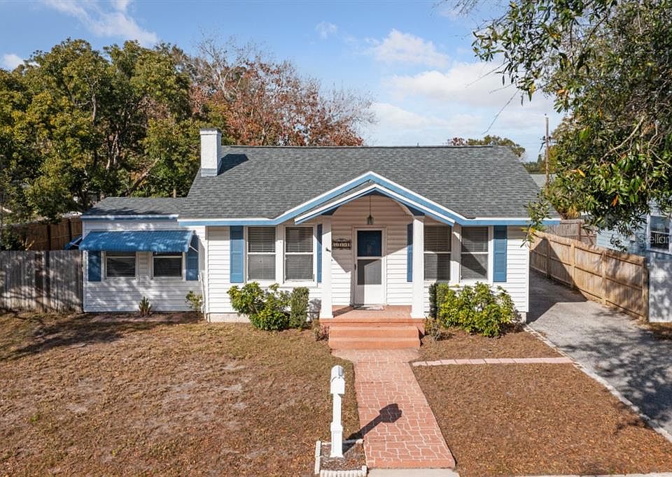 This historic 1925, move-in ready, treasure offers the best of all worlds... stunning curb appeal, incredible lot in a Non flood zone, oversized detached garage, large shaded yard, rear alley access, AND unparalleled location just a short walk or golf cart ride from downtown. The home features a bright plan with countless windows that punctuate every room, 6” baseboards, thick window & door molding, plus exterior window awnings & shutters that give the home warmth you felt when visiting grandma. Home includes the following: formal living room with brick fireplace, formal dining area, bright kitchen with breakfast nook & laundry closet, master and guest bedrooms, an updated hall bath, PLUS a separate family room with access to a wood deck and fenced back yard. The family room could double as an office, den or 3rd bedroom. Upon entering the living room, you'll be welcomed by a space that radiates care & charm. Plentiful cabinets adorn the kitchen, preparing meals becomes a delight as you gaze out the windows into the majestic yard that is sure to inspire culinary creativity. Step out to the rear deck and find yourself enveloped in serenity, the perfect backdrop for your morning coffee and evening glass of wine. The abundant indoor and outdoor living spaces make this home ideal for entertaining. Footsteps away is a parking pad and separate oversized garage with utility sink & laundry hook-ups. Trash is picked up in the rear alley so the front of the home always looks clean and fresh. Big ticket items have been recently addressed: new A/C System (2022) and new shingle roof (2023). Other updates include, KITCHEN: counters, backsplash, stainless steel sink, faucet, and new upright washer/dryer, BATHROOM: vanity, mirror, light fixture, and showerhead, INTERIOR: cordless plantation blinds, ceiling fan, light fixtures, and plumbing. Stroll downtown and enjoy the long list of boutiques, restaurants, lounges, breweries, library, and tranquility of beautiful Sims Park on the Cotee River! Celebrate the annual Chasco Fiesta, Seafood, and Blues Festivals as well as Art and Auto Shows. This gem is a MUST SEE for buyers seeking a unique piece of town history along with an eclectic lifestyle this property conveys.