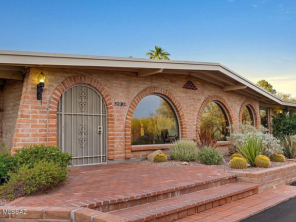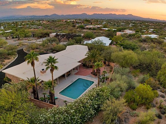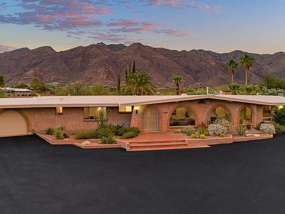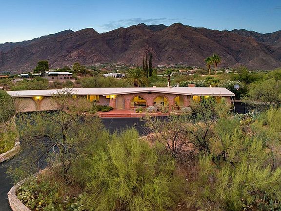 Imagine a personal retreat, far from the daily grind, where every day feels like a luxurious escape. This classic territorial-style home, nestled on over 1.5 acres in the heart of the desirable Catalina Foothills and District 16, offers just that. Enjoy serene mornings with coffee, relaxed afternoons with a drink, or delightful evenings dining with loved ones in the spacious north-facing backyard. Here, you'll be treated to breathtaking views of the Catalina and Tucson mountains, the gentle passing of local wildlife, and spectacular Arizona sunsets. From the front of the home, romantic city lights twinkle in the distance. Take a refreshing dip in the generously sized pebble tec pool, surrounded by swaying palm trees, vibrant oleanders, and thoughtful desert landscaping - a true oasis. This home is an entertainer's dream, boasting an open floor plan and a fabulous custom-built kitchen. The kitchen features granite countertops, ample cabinetry, a dedicated breakfast area, and brand-new appliances including a double wall oven, stovetop with retractable downdraft vent, microwave, and wine cooler, plus a newer dishwasher. For added convenience, a reverse osmosis system and water softener are included. Step into the expansive entry gallery, where arched windows and adobe brick masonry flood the hallway, living, and dining rooms with natural light, evoking a sense of timeless charm. A gas fireplace in the family room provides a cozy ambiance on cooler evenings. The versatile game/flex room, complete with built-in cabinetry, a bar, and pocket doors to the family room, easily transforms into an office, playroom, or entertainment hub. Travertine tile graces high-traffic areas, while soft, newer carpet adds comfort throughout the rest of the home. The primary bedroom suite offers a private retreat with a sliding door leading to the patio, built-in closet space, and a large walk-in closet off the bathroom, which features double vanities. The laundry room provides additional storage and a convenient half bath, perfect for pool guests. Outdoor amenities include a built-in gas BBQ and westside gate access to the garage. Beyond your private haven, you'll also enjoy access to the Skyline Bel Air Estates HOA community amenities, including a community pool, tennis courts, basketball courts, and a grill area. This property offers peace of mind with a freshly coated roof featuring a transferable 5-year warranty and a newer dual-zone HVAC system. The driveway has also been newly seal-coated. An attached list details all recent improvements.