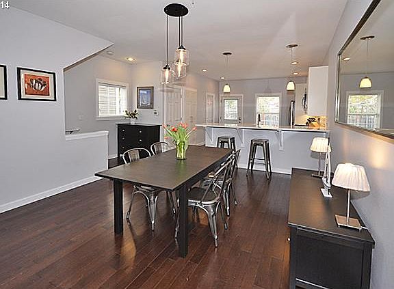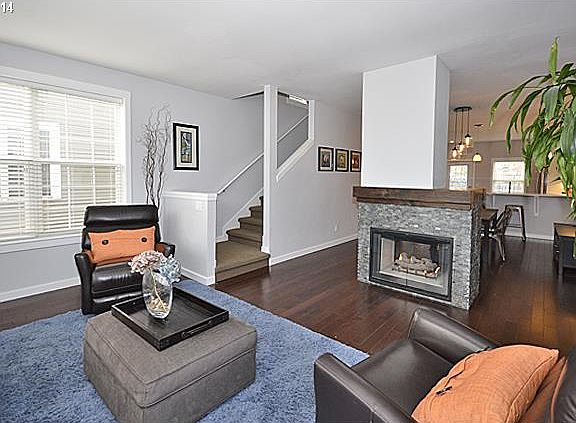 Stunning high-end remodel with Uber Cool finishes ! Sexy white designer kitchen with slab quartz counters, SS appliances and large eating bar.Solid Hickory floors throughout main level,"see-through" gas fireplace,custom Blt-ins in living room,Carrera Marble Vanity and Mt Hood view in Master. Coveted end unit with large custom cedar deck and private landscaped yard. Fantastic investment in area with amazing upscale development occurring.