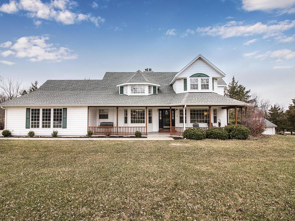This custom built 1.5 Story sits on almost 6 acres of wooded timber just southwest of CoMo. It offers 5 bedrooms, 3.5 baths, an attached 3 car garage & a detached 28x21 Shop. Take advantage of almost 5,000 finished sq ft, Geothermal HVAC, swimming pool, wrap around covered porch, multiple decks, stone hearth, granite counter-tops, wet-bar, exercise room & must see privacy on the edge of town!