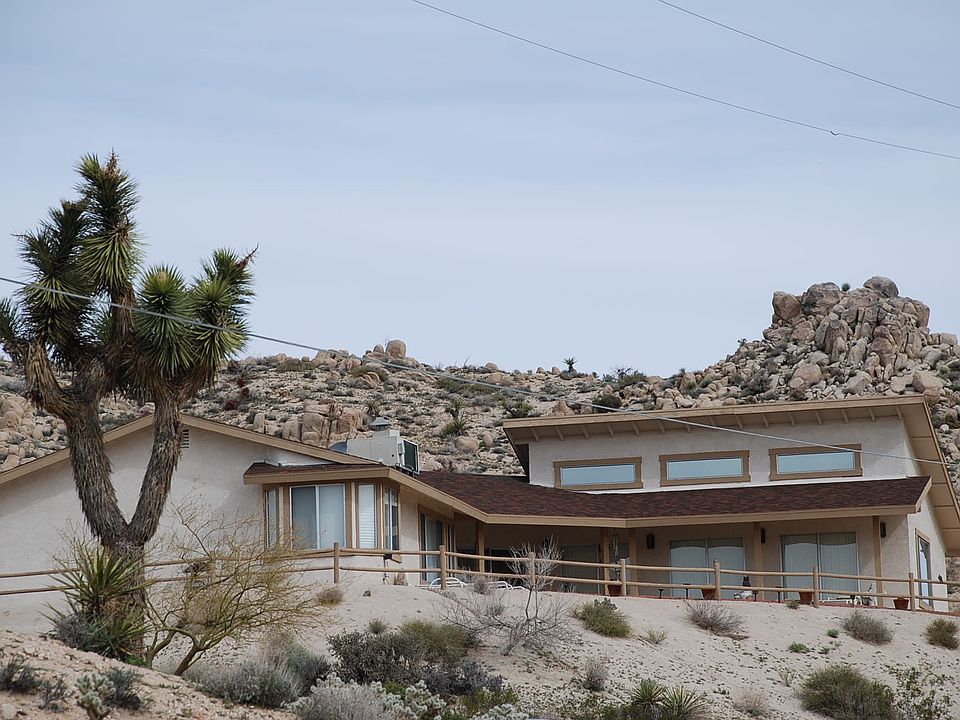 Custom built to take advantage of the spectacular views. Vaulted ceilings with Clerestory windows on the south side, covered porch on the view side, boulders and mountains all around. Updated with travertine floors, granite countertops and stone backsplash, carpet and paint. Large walk-in pantry and laundry room off the kitchen. Master has two large walk-in closets and a bay window full of views of the valley. Fireplace is framed from floor to ceiling in stone. Large Master bath features a dual sink granite counter top, travertine floors, shower and a soaking tub that has a large picture window with great views. Guest bath has granite counter top and travertine floors along with hallway floors. 2 car garage, high ceiling with over head storage. Well groomed yard with low maintenance desert landscape.