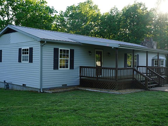 Beautiful country setting..mature trees in place for great shade. Home has metal roofing, vinyl siding, covered front & rear porches.. Recent upgrades include some fixtures, rich wood added in various areas of house to create a rustic appeal..family room/den has masonry fireplace w/gas logs, bay window. Lots of storage in rear with buildings in place previously used to house horses. Great hobby area...can be used for storage, animals, etc.