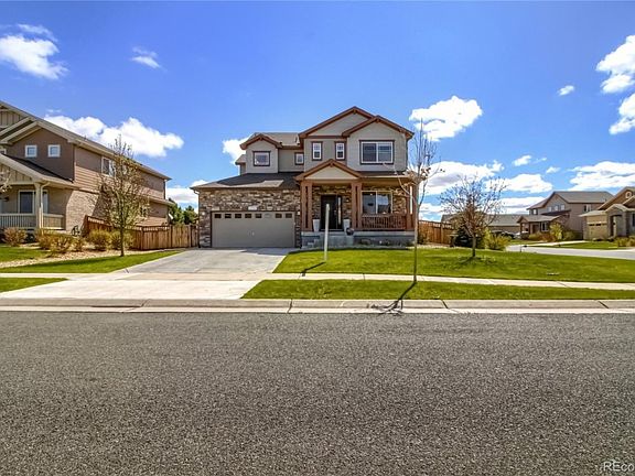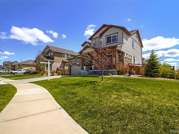 Enjoy this fantastic DR Horton home in the sought after High Point at DIA neighborhood. This 3300+ finished sqft, 4 bedrooms, 3.5 bath home features a large open floorplan, vaulted ceilings, office, upgraded floors, Quartz counters, high-end Samsung chef collection appliances with smart home technology, nest thermostat, fireplace, and all the technology you could hope for in your new home. The spacious master bedroom also features a walk-in closet and five-piece bath. Upstairs there are 2 additional bedrooms and 1 bathroom. The basement is fully finished with a second living area, kitchenette, full bathroom, and bedroom. The backyard is ready for you to enjoy with double patios and an extendable awning! You will be sure to enjoy entertaining your guests during the summer on the back patio.