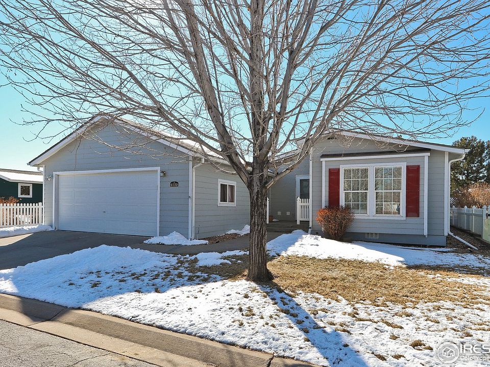 Remember dreaming of a home with a white picket fence to call your own? Look no further, this charming home is located on a quiet cul-de-sac across from a small common green filled with trees and park benches for your expanded front yard enjoyment! Enter the home from the front porch or from the garage into the mud room. A bright sunny kitchen with eat-in dining opens up to the patio. The living room is open to the dining room. A full bath with skylight serves guests and two bedrooms. The master bedroom is large with a sliding door to a second patio. The master bath has a large soaking tub and a separate walk-in shower. The backyard is fenced and there is a small shed for your lawn tools. It is move-in ready! Quick possession! Prairie Greens is a land lease community. You purchase the home and lease the land. The community offers a clubhouse, outdoor pool, fitness center and playground/park areas as part of the land lease of $625 monthly. Purchase Cash, FHA or VA.